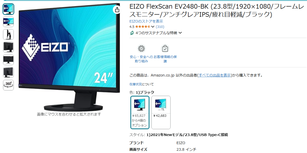 EIZOのモニターにしてます。色の再現度が高いとかでこれを選んだ気がします。かなり前に買ったのと、サブモニターがほしいのでもう少ししたら買い換えようかなあ〜。